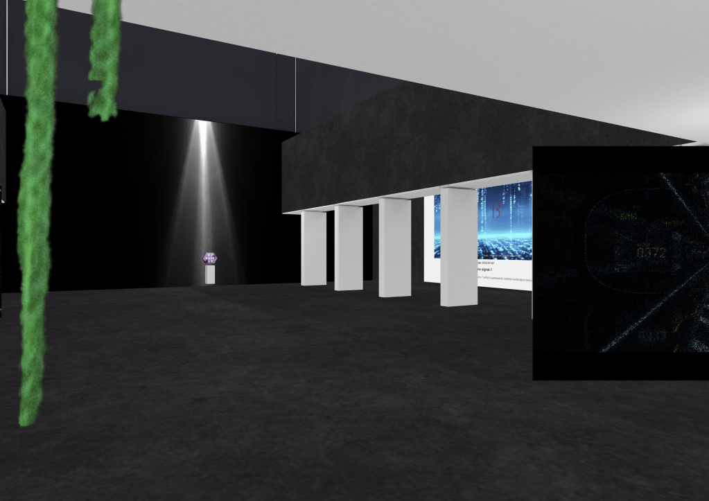 Exploration of Host Blind Spot as a physical exhibition, translated from its digital form into a spatial layout. A Kunstmatrix mock-up has been developed to test scale, adjacency, and material presence, and to communicate feasibility for potential future exhibition contexts.
