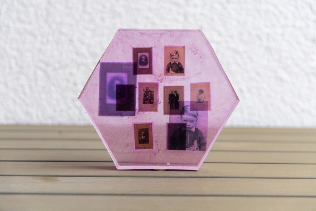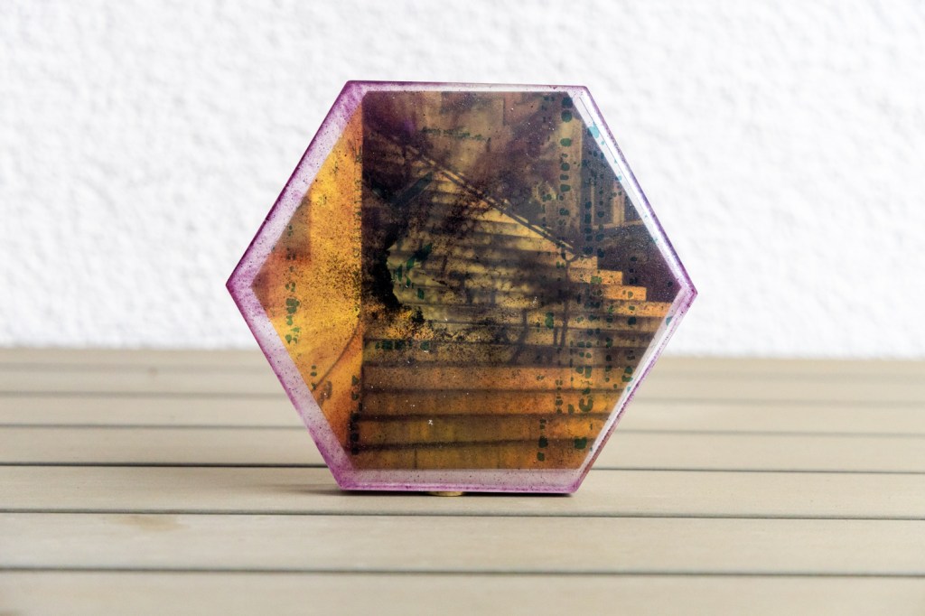 Resin and pigment, 15 cm; Pigment prints, 60 × 40 cm.